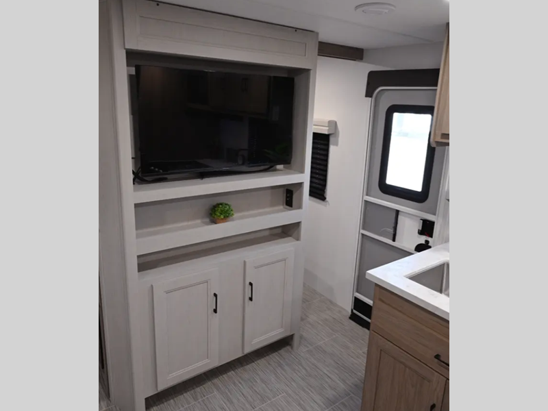Sleeps 5 Slides 1 Length 28 ft 2 in Ext Width 8 ft Ext Height 11 ft 3 in Int Height 6 ft 9 in Hitch Weight 594 lbs GVWR 7000 lbs Dry Weight 5356 lbs Cargo Capacity 1644 lbs Fresh Water Capacity 52 gals Grey Water Capacity 35 gals Black Water Capacity 35 gals Available Beds Queen Refrigerator Type 12V Double Door Refrigerator Size 10 cu ft Cooktop Burners 2 Shower Size 32" Number of Awnings 1 Water Heater Type Suburban Tankless AC BTU 15000 btu TV Info 40” Smart TV Awning Info 18' Velarium Velocity Switch Power Awning w/ Light Strip Axle Count 2 Shower Type Radius Similar Floorplans