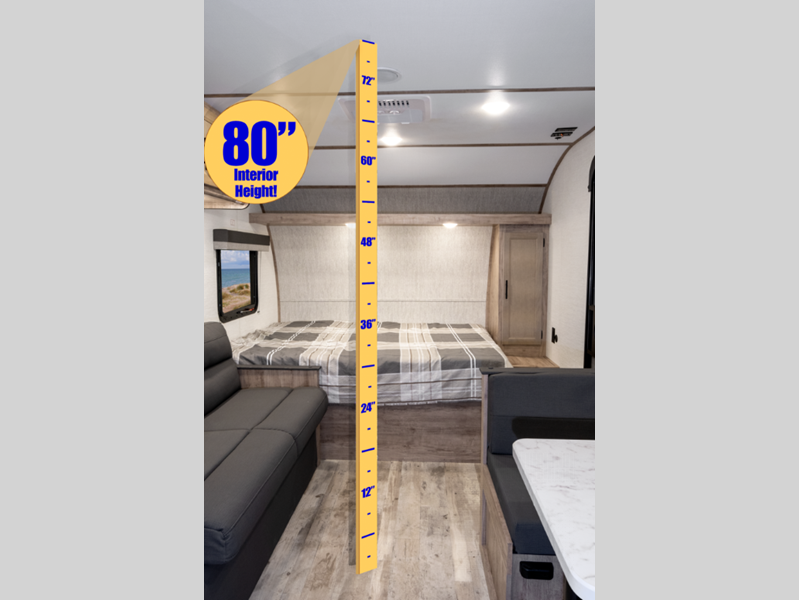 Sleeps 5 Length 22 ft 2 in Ext Width 8 ft Ext Height 10 ft 8 in Int Height 6 ft 8 in Hitch Weight 638 lbs Dry Weight 3663 lbs Cargo Capacity 1395 lbs Fresh Water Capacity 23 gals Grey Water Capacity 36 gals Black Water Capacity 36 gals Furnace BTU 20000 btu Available Beds Murphy Bed Refrigerator Type 12V Refrigerator Size 10 cu ft Cooktop Burners 2 Number of Awnings 1 LP Tank Capacity 20 lbs Water Heater Type Tankless AC BTU 13500 btu Awning Info Power Axle Count 1 Number of LP Tanks 1 Shower Type Standard Electrical Service 30 amp Similar Floorplans